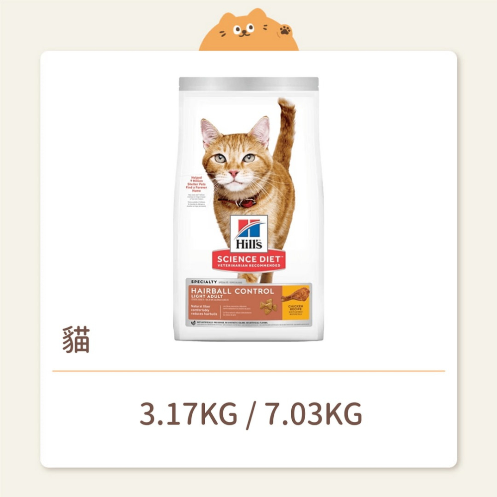 希爾思持續進行營養研究,了解天然纖維如何和緩清除貓咪體內毛球。 - 天然纖維和緩清除體內毛球 - 熱量相較於希爾思寵物食品成貓毛球控制配方減少 13% - 精實肌肉所需的優質蛋白質 - 營養配方有助避免貓咪體內毛球形成 ,同時有利於減重與健康生活
