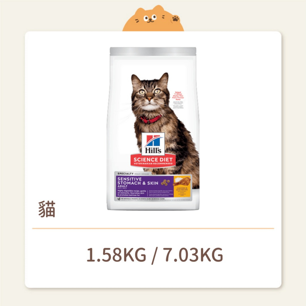 希爾思透過研究寵物的生物學,瞭解營養對消化及皮膚健康影響。此高消化食物能幫助營養素吸收,並溫和顧胃。特調含維生素 E 及 Omega-6 脂肪酸的營養配方有助維持及保護皮毛。 - 添加富含營養的益生纖維-果寡糖 - 溫和顧胃的極易消化配方 - 維生素 E 與 Omega-6 滋潤皮膚及毛髮 - 含益生纖維的極易消化配方,滋潤皮膚幫助皮毛亮麗