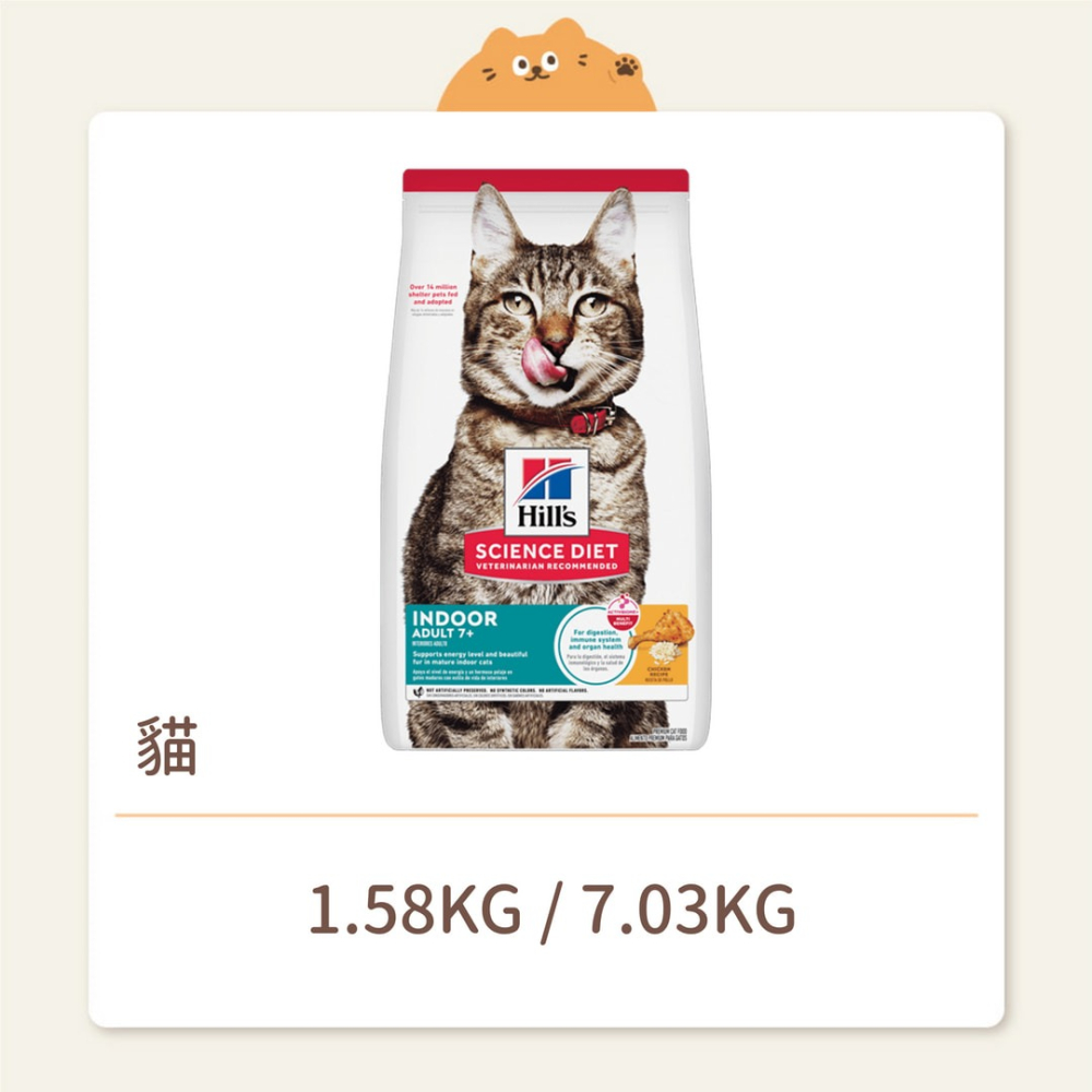 為室內熟齡貓老年期能量需求量身打造 - 天然纖維促進消化健康,優質食材讓清理貓砂變得好輕鬆 - 優質蛋白質以建構精實肌肉 - 使用天然優質、易消化食材製作的美味營養
