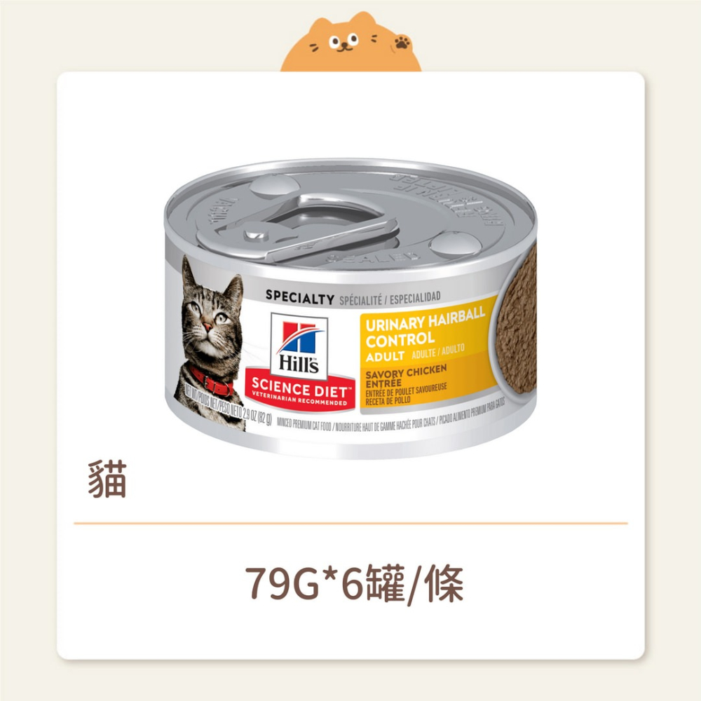 希爾思寵物食品 成貓 泌尿道毛球控制 香嫩雞肉主食罐可維持整體泌尿系統健康並幫助避免毛球形成 - 健康的均衡礦物質比例:低含量鎂,控制尿液pH值並有助於整體泌尿系統健康 - 天然纖維以和緩的方式清除體內毛球 - 維生素E、Omega-3及Omega-6脂肪酸促進毛髮亮麗 - 優質的雞肉蛋白質提供美味又營養的一餐