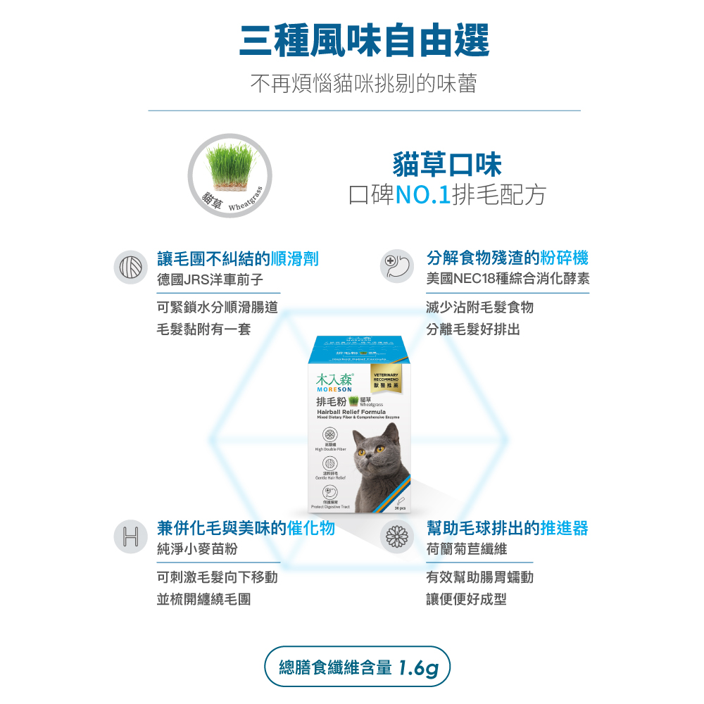 木入森貓咪排毛粉|科學配方解決毛球困擾,針對卡便與吐毛