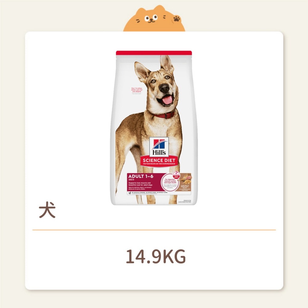針對喜歡每日飲食有變化的成犬,希爾思寵物食品成犬羊肉與糙米乾糧提供優質、易消化的原料,滿足成犬的能量需求。此款優質犬用食品富含Omega-6和維生素E,有助於維持健康皮膚和毛髮,以天然食材製成,同時提供優質蛋白質,幫助成犬維持肌肉。由於成犬需要強健的腸道,因此此款成犬食品使用天然纖維促進消化健康。此款成犬食品經過數十年的尖端研究調配而成,可口滋味會受到成年狗狗喜愛。
