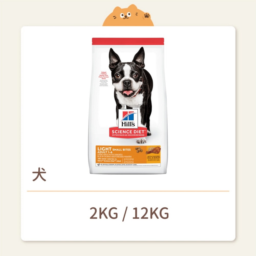 為低活動量、低熱量需求成犬所打造的精確營養,美味小顆粒,能幫助維持健康的體重與生活 - 低卡路里與左旋肉酸素有助維持理想體重 - 優質蛋白質與天然纖維可幫於正餐間維持飽足感 - Omega-6 與維生素 E 有助皮毛亮麗