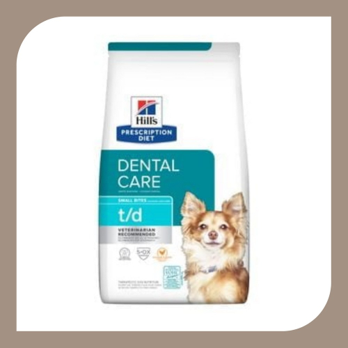 希爾思處方食品犬用t/d 小顆粒 經臨床實證可幫助減少牙菌斑、牙漬和牙垢堆積,並清理小型犬的牙齦。作用相似於結合牙刷、牙線和漱口水的效益,為狗的日常健康配製的完整且均衡的營養解決方案。