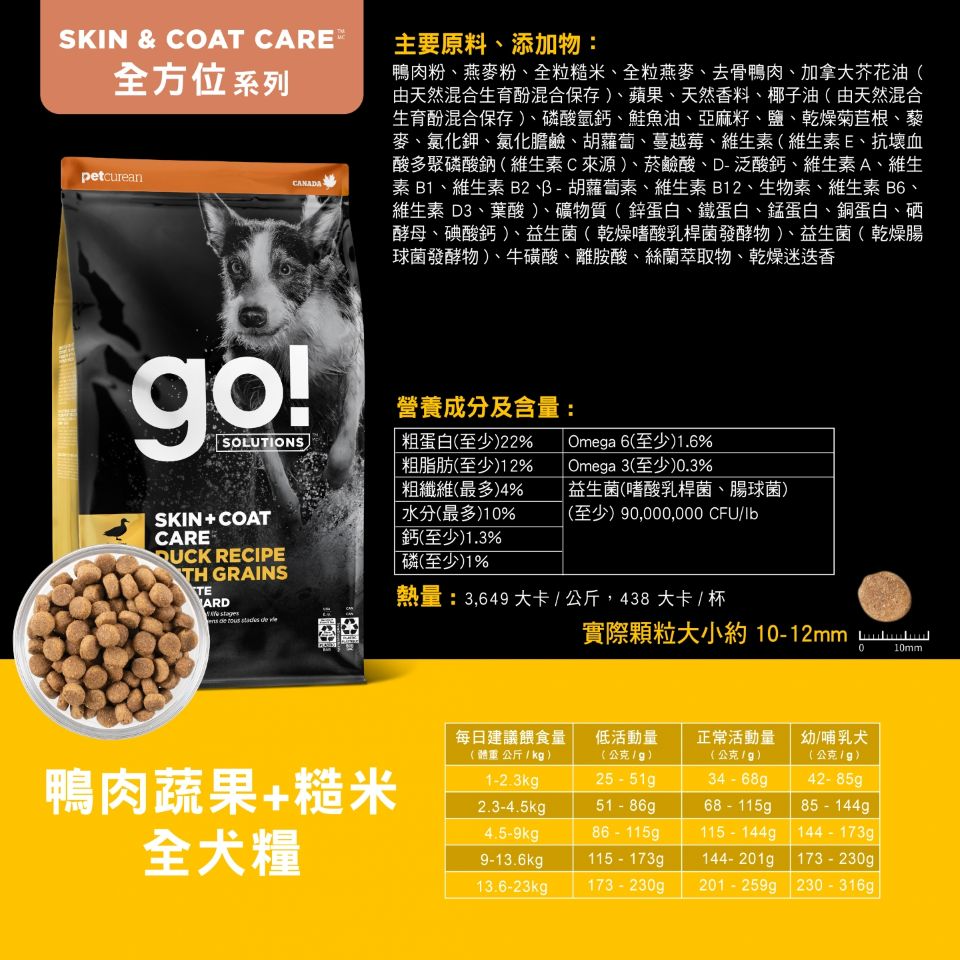 【go!】狗狗 天然糧 鴨肉蔬果+糙米 有穀全犬