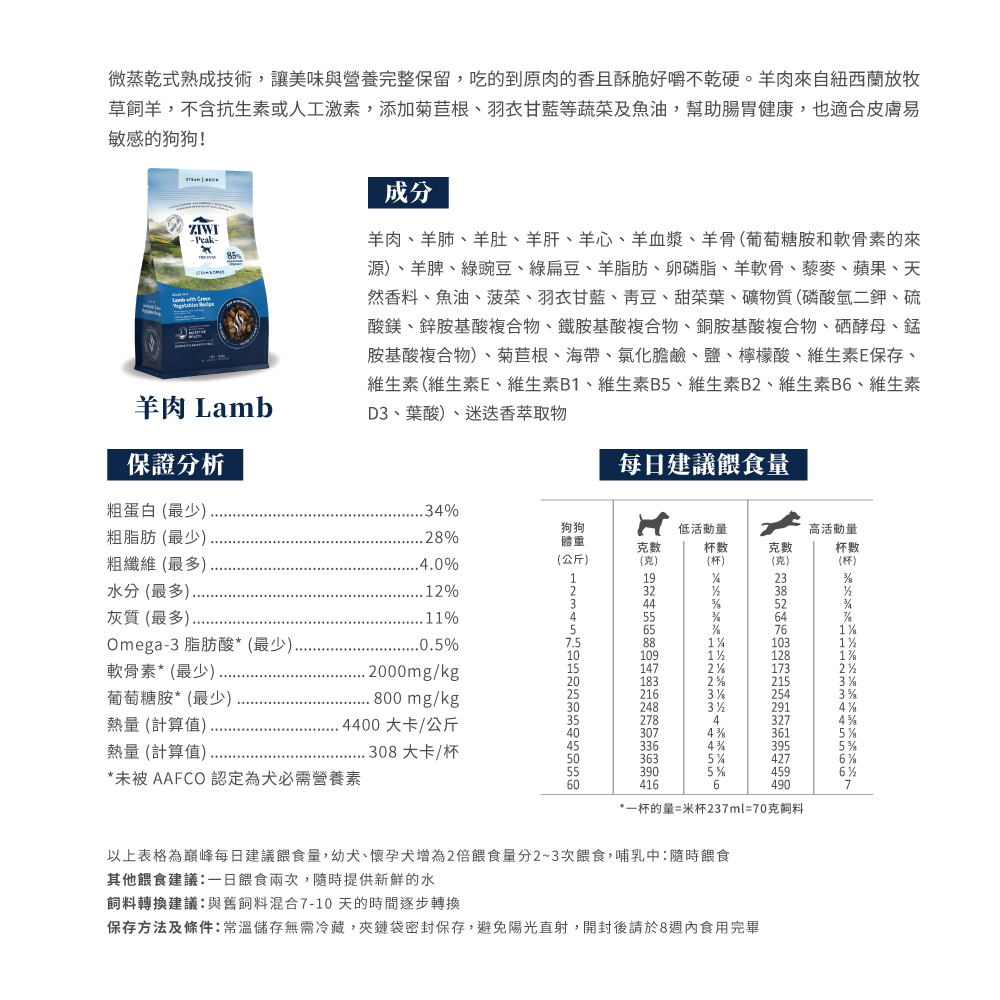 【ZIWI 巔峰】 狗狗 微蒸乾式熟成鮮肉糧 羊肉