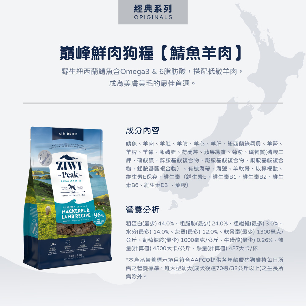【ZIWI 巔峰】 狗狗 經典鮮肉糧(肉片) 鯖魚羊肉