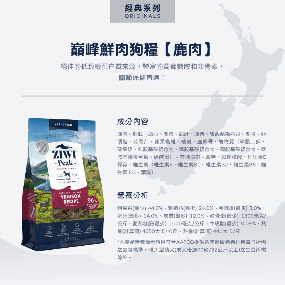 【ZIWI 巔峰】 狗狗 經典鮮肉糧(肉片) 鹿肉
