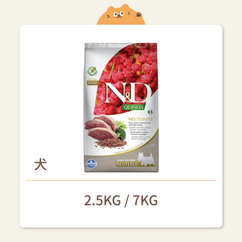 【法米納】狗狗 一般飼料 QD7 犬用-室內犬體態泌尿保健-鴨肉蘆筍-小顆粒