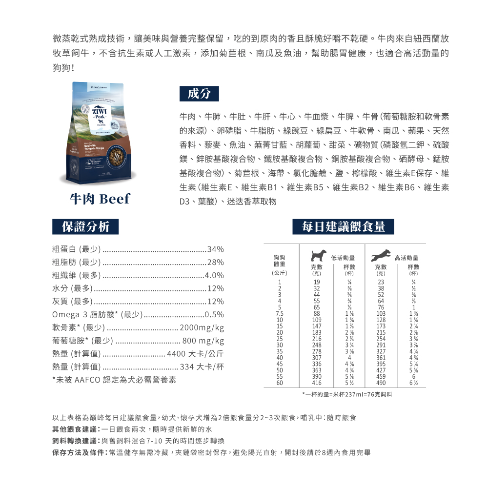 【ZIWI 巔峰】 狗狗 微蒸乾式熟成鮮肉糧 牛肉