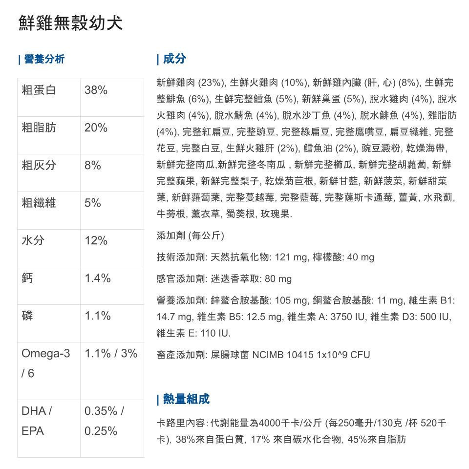【Orijen歐睿健】狗狗 無穀飼料 鮮雞幼犬