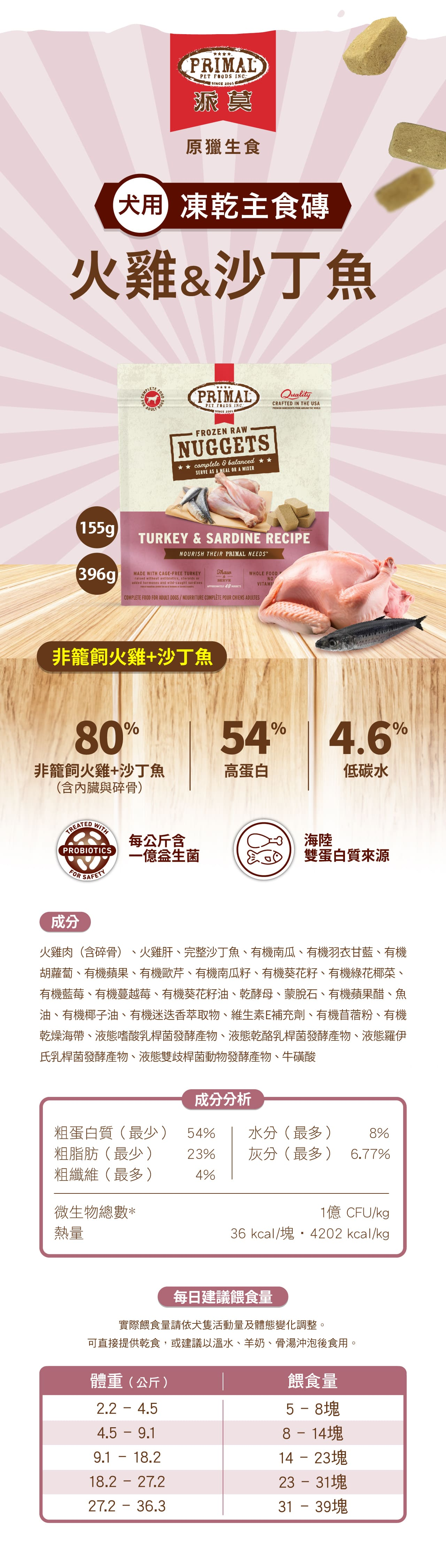 【派莫】狗狗 凍乾主食磚 火雞&沙丁魚