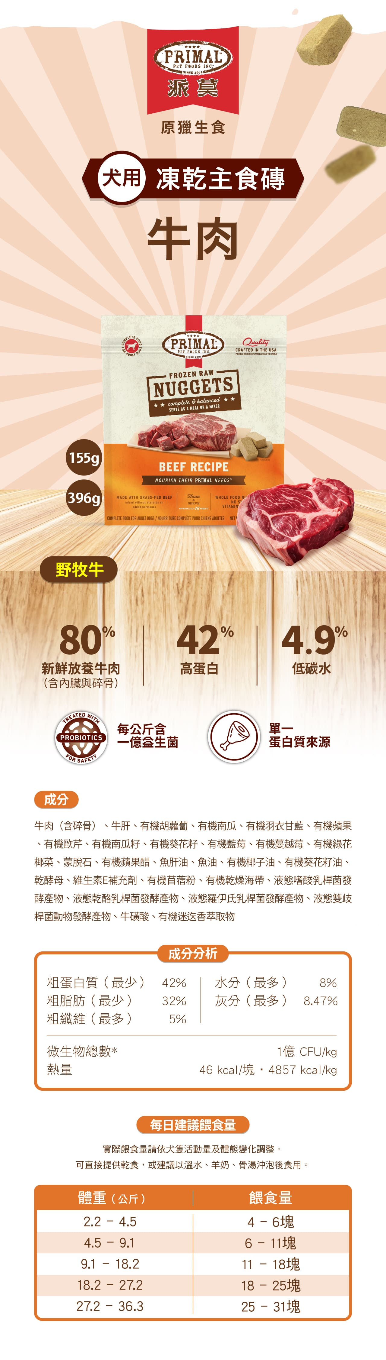 【派莫】狗狗 凍乾主食磚 牛肉