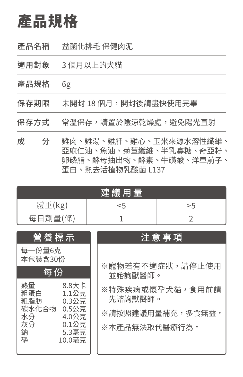 【毛掌醫學】貓犬 益菌化排毛 保健肉泥