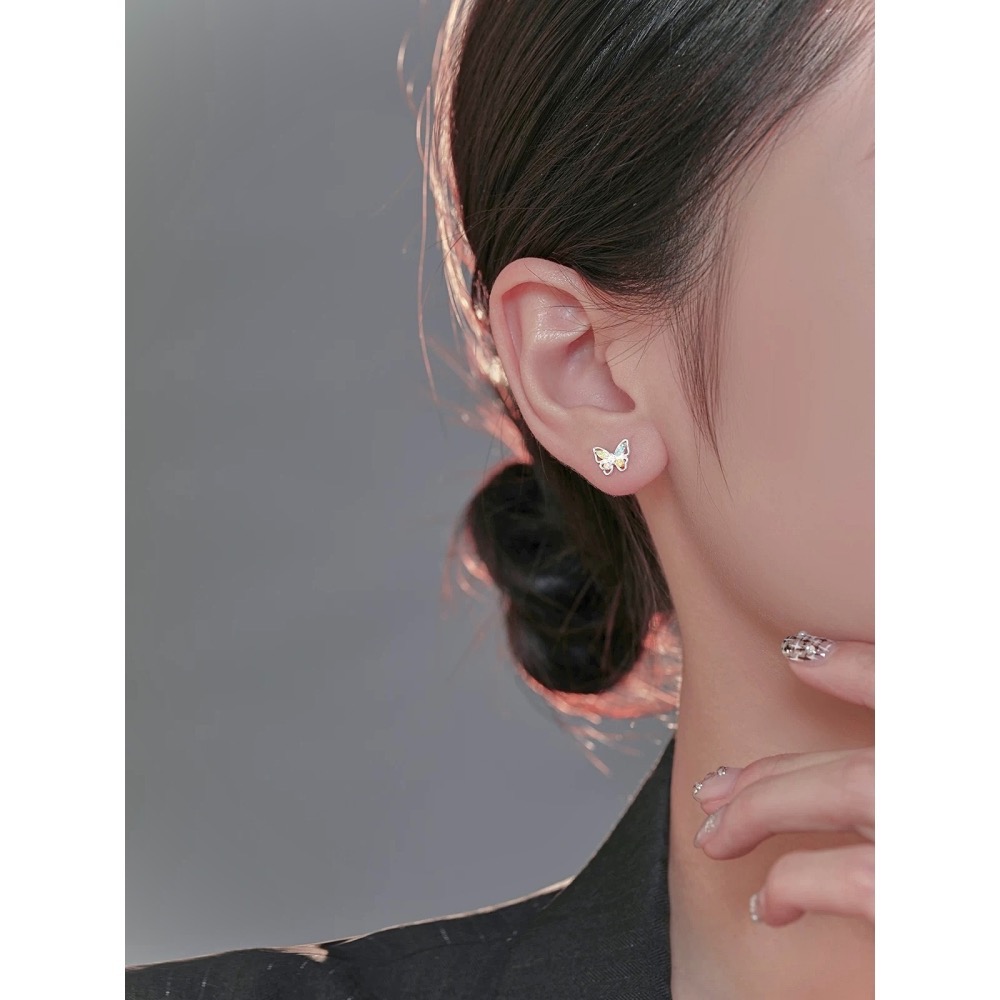 蝶語 s925銀 七彩鋯石蝴蝶耳釘