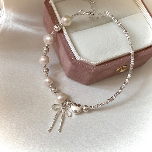 S925銀 珍珠 碎銀 蝴蝶結手鍊
