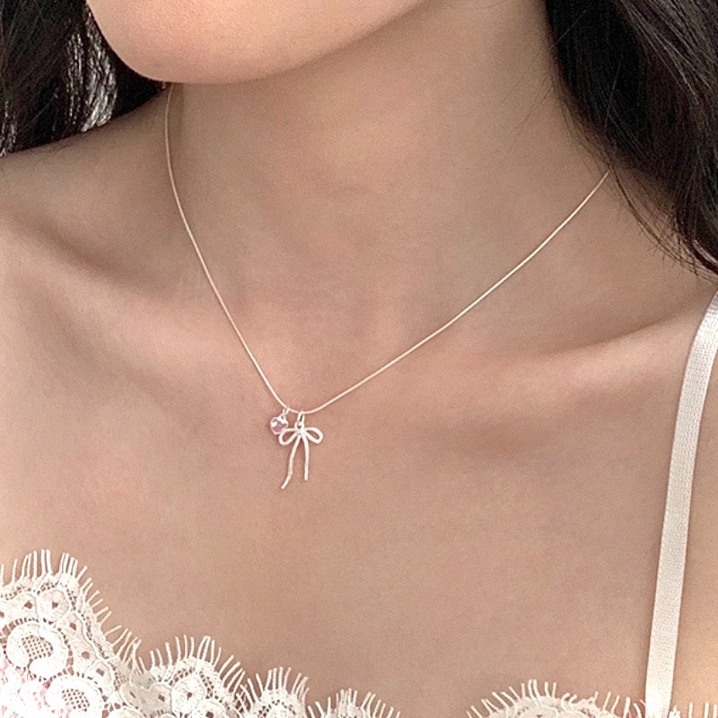 沫浪 S925銀 蝴蝶結愛心鋯石項鍊
