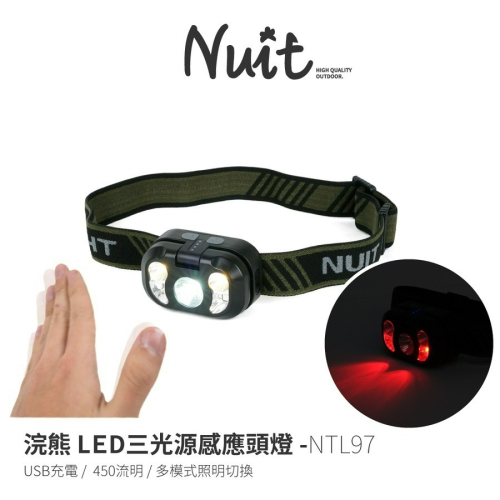 商品名稱努特 NUIT 浣熊 LED三光源感應頭燈