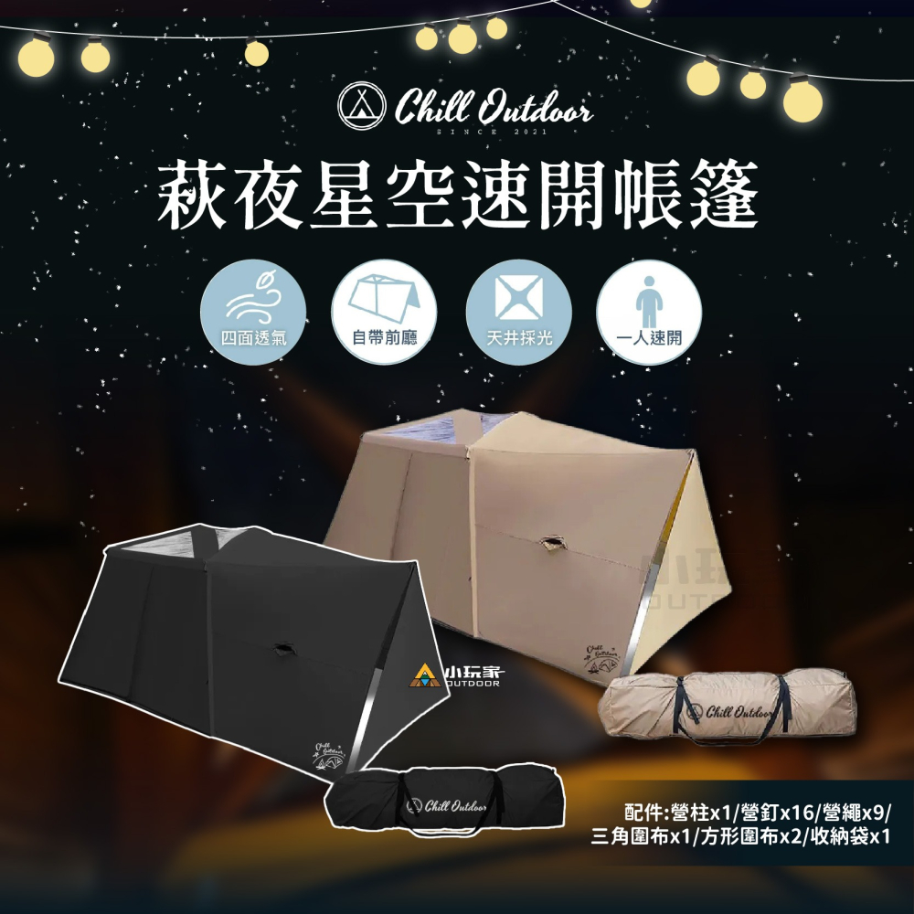 配件:營柱x1/營釘x16/營繩x9/三角圍布x1/方形圍布x2/收納袋x1