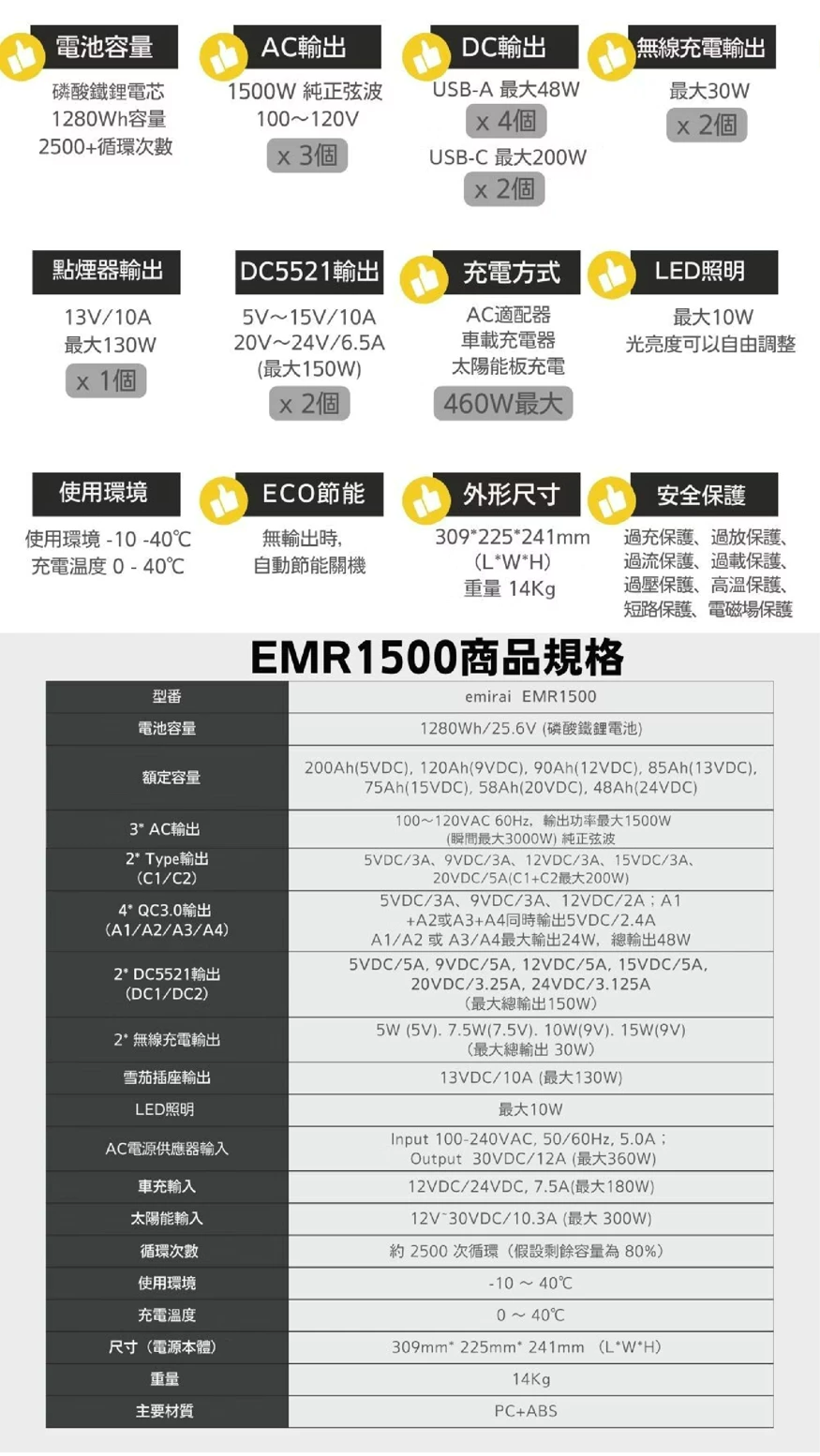 Q2:EMR1500 可以為哪些設備供電?