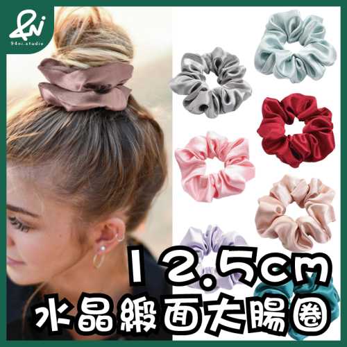 『台灣現貨』12.5cm 水晶緞面高級感大腸髮圈|簡約氣質馬尾頭繩|ins風百搭髮飾|光澤細膩【94ni.studio】