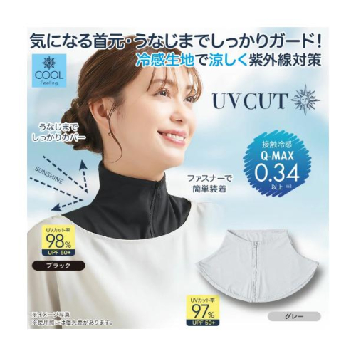 紫外線防護率高達97%以上,UPF50+ 觸感涼爽 Q-MAX 0.34的布料保持涼爽並避免頸部和頸背曬傷 穿著寬領口的上衣也沒問題 輕薄,但能有效阻擋紫外線 適合開車、外出甚至打高爾夫等運動時免受陽光照射 拉鍊式,方便穿脫,適合各種場合,從日常使用到運動 可以折疊,方便攜帶。可機洗 ☑尺寸:頸圍最大38cm ☑材質:85% 尼龍,15% 聚氨酯 ☑規格:【黑色,灰色】