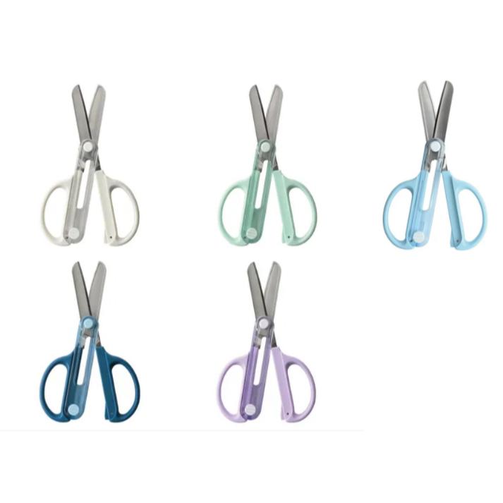 兒童安全剪刀,刀尖帶有保護蓋 由於蓋子是一體式的,無需擔心蓋子掉落或丟失 不使用時即可上推透明蓋收納 刀片採用圓角設計的厚刀片,刀片切割銳利好剪 小朋友做美勞或剪紙方安全又好用 切割膠帶時不易沾黏 附帶姓名貼紙 ☑尺寸:約 7× 1.5×15.3 cm ☑材質:不銹鋼、ABS、PC ☑規格:【白色(右手),藍綠色(右手),海軍藍(右手),紫色(右手),淺藍色(左手)】