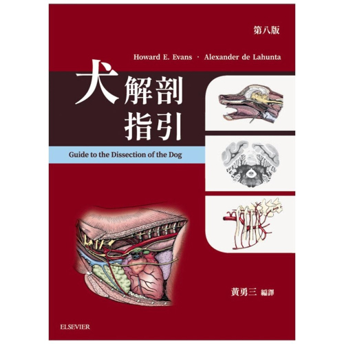 自1947 年紐約州康乃爾大學獸醫學院前解剖學系主任Malcolm Miller 教授首次出版到此版,《犬解剖指引》( Guide to the dissection of the Dog ) 內容改變相當多。1971年Evans及de Lahunta以新形式出版 Miller’s guide to the dissection of the Dog 並加入多張圖片;接下來的幾個版本也調整了一些解剖步驟、新增圖片,並增加活體觸診的相關說明。這些版本已經被翻譯成日文、西班牙文、葡萄牙文、韓文及中文。在第八版中我們調整並新增了許多圖片,另外還從Marcus Singer出版的The Brain of the Dog in section 書中選出一些腦的橫切面圖,再依據現今的命名重新標示。書中所有專有名詞均以最新、第五版獸醫解剖學名詞(Nomona Anatomica Veterinaria)為依據。