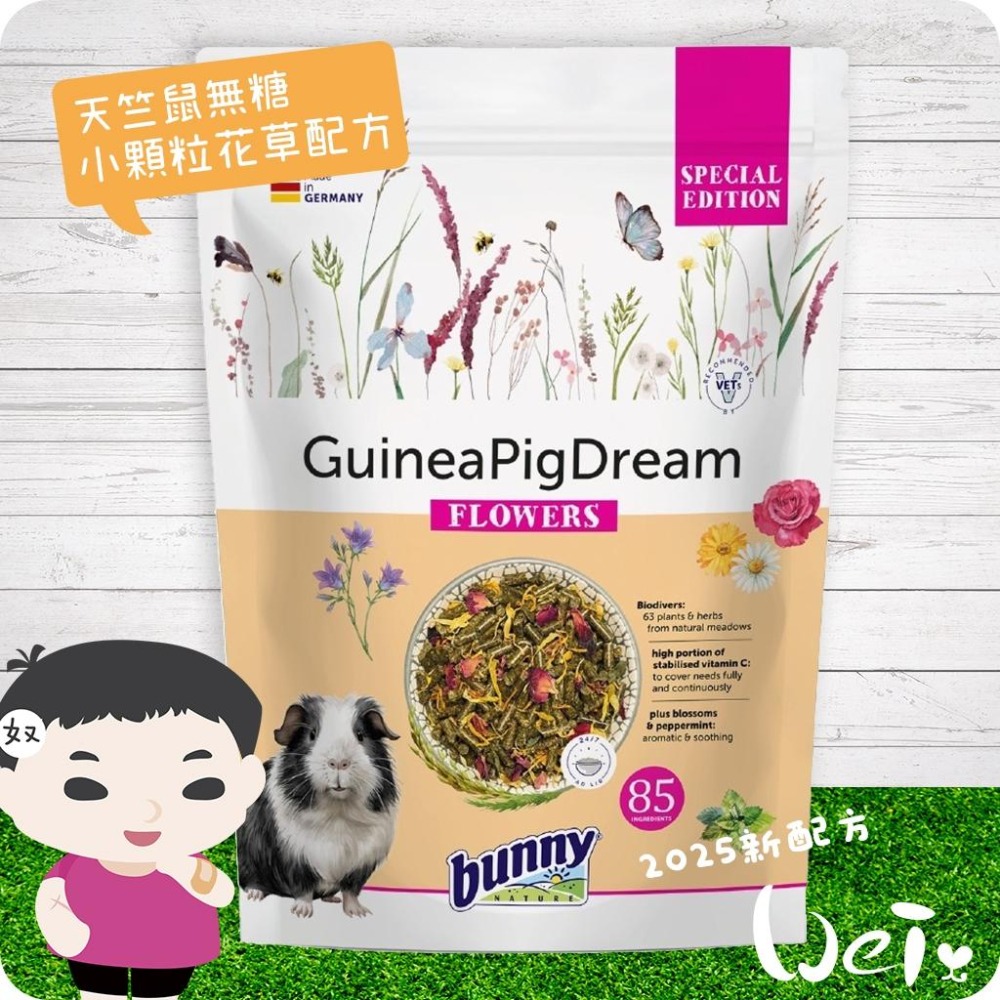 魏啥麻-Bunny德國邦尼成天竺鼠無糖高安C花草配方(小顆粒圓柱 低鈣 84種草本 含花草 薄荷 瑪卡根) 飼料