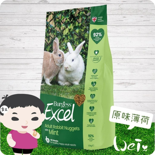 魏啥麻-伯爵Burgess Excel成兔薄荷 1.5kg (味道較重 添加維生素 礦物質 益生元)兔飼料