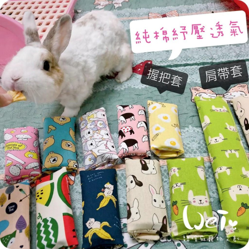 魏啥麻手作-純棉紓壓透氣護套 /握把套/手把套/肩墊/揹帶/背帶/外出籠/外出袋(兔 天竺鼠)