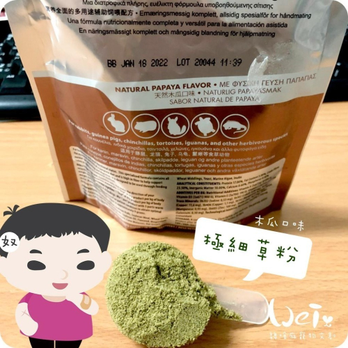 魏啥麻-美國OXBOW木瓜極細灌食草粉 100g(低鈣 無苜蓿 粗纖維高(21-26%)蛋白高(17%)兔 天竺鼠