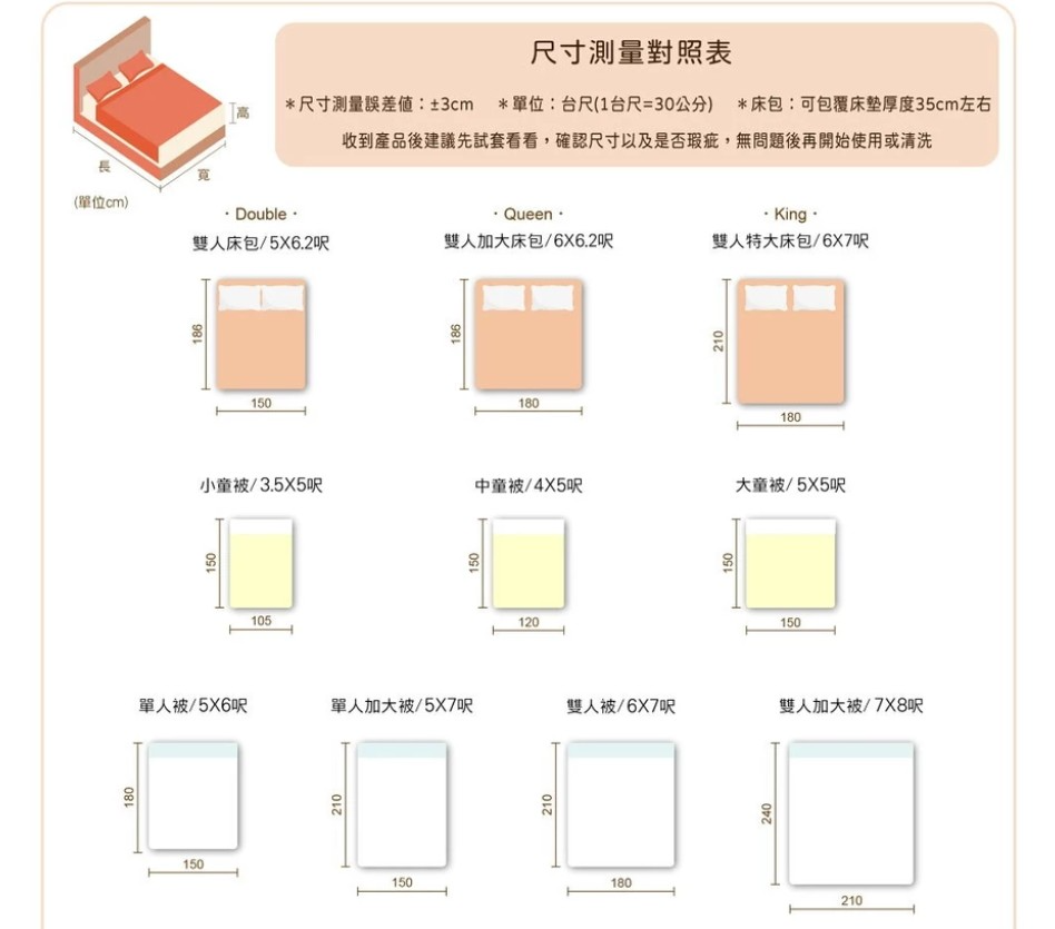 3.5x5呎(105x150cm±3cm)/5x7呎(150x210cm±3cm)