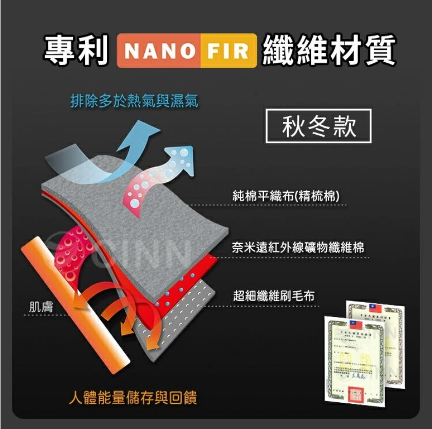 夾層-100%聚酯纖維(含奈米遠紅外線、鍺、鈦)