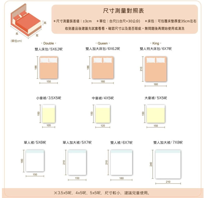3.5x5呎(105x150cm±3cm)/5x6呎(150x180cm±3cm)