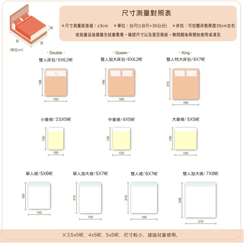 尺寸:5x6呎(150x180cm±3cm)/5x6.2呎(150x186cm±3cm)/5x5呎(150x150cm±3cm)/5x4呎(150x120cm±3cm)