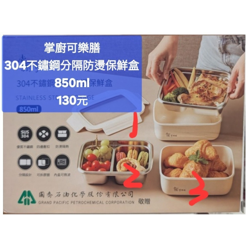 掌廚可樂膳304不鏽鋼分隔防燙保鮮盒850ml