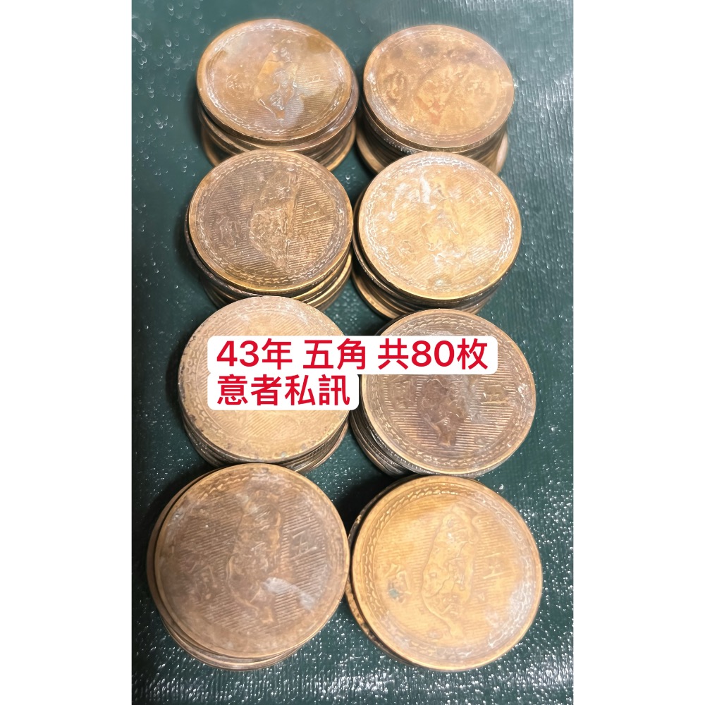 臺灣錢幣-#250 民國43年伍角-五角-銅錢幣~直徑27mm重7公克 共80枚
