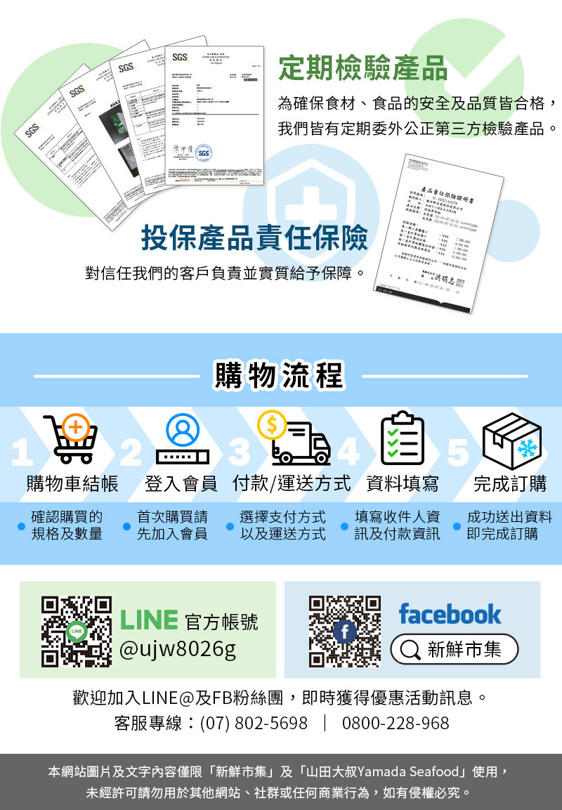 生鮮農產品、海鮮及肉品皆屬天然產物,顏色、大小、形狀可能略有差異,或因採收、加工出現細微瑕疵(如輕微刮痕、色差等),此屬正常範圍,不影響品質與食用安全。