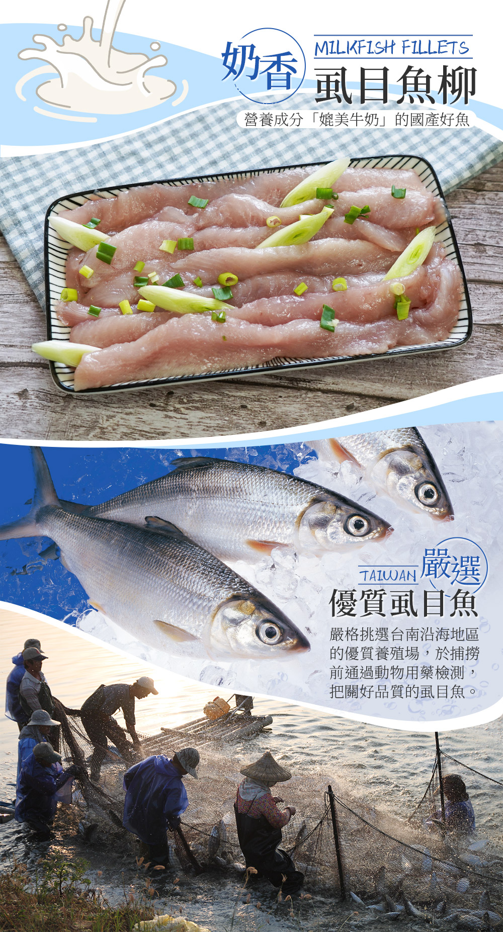 ★ 虱目魚營養成分媲美牛奶,有著「牛奶魚」之稱。 ★ 香煎、酥炸、煮湯、燉粥都美味。
