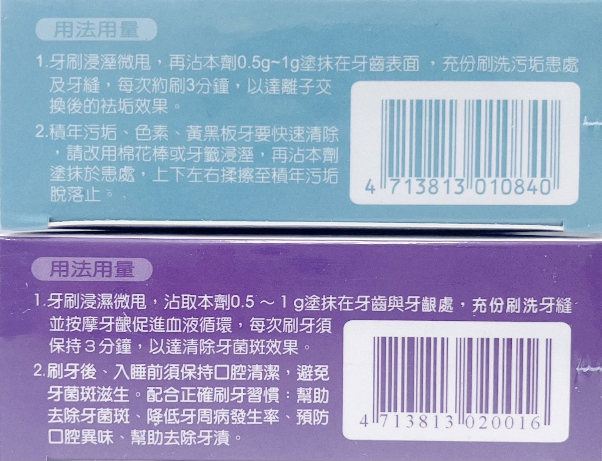 睡前飯後,將牙刷浸濕後,把牙刷上多餘的水份甩乾,輕輕沾取本產品0.4~0.6 g,刷洗牙齦與牙齒。