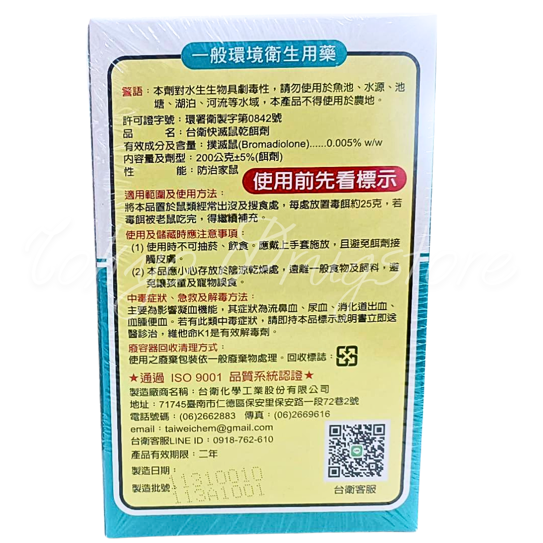 台衛 快滅鼠乾餌劑 200g 快滅鼠 滅鼠劑 台衛化學 老鼠