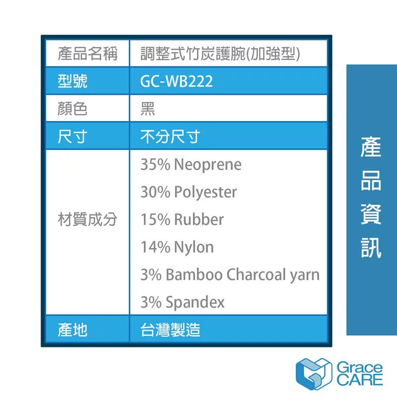 Grace CARE 竹炭護腕(加強型) 單盒一入(非一雙)