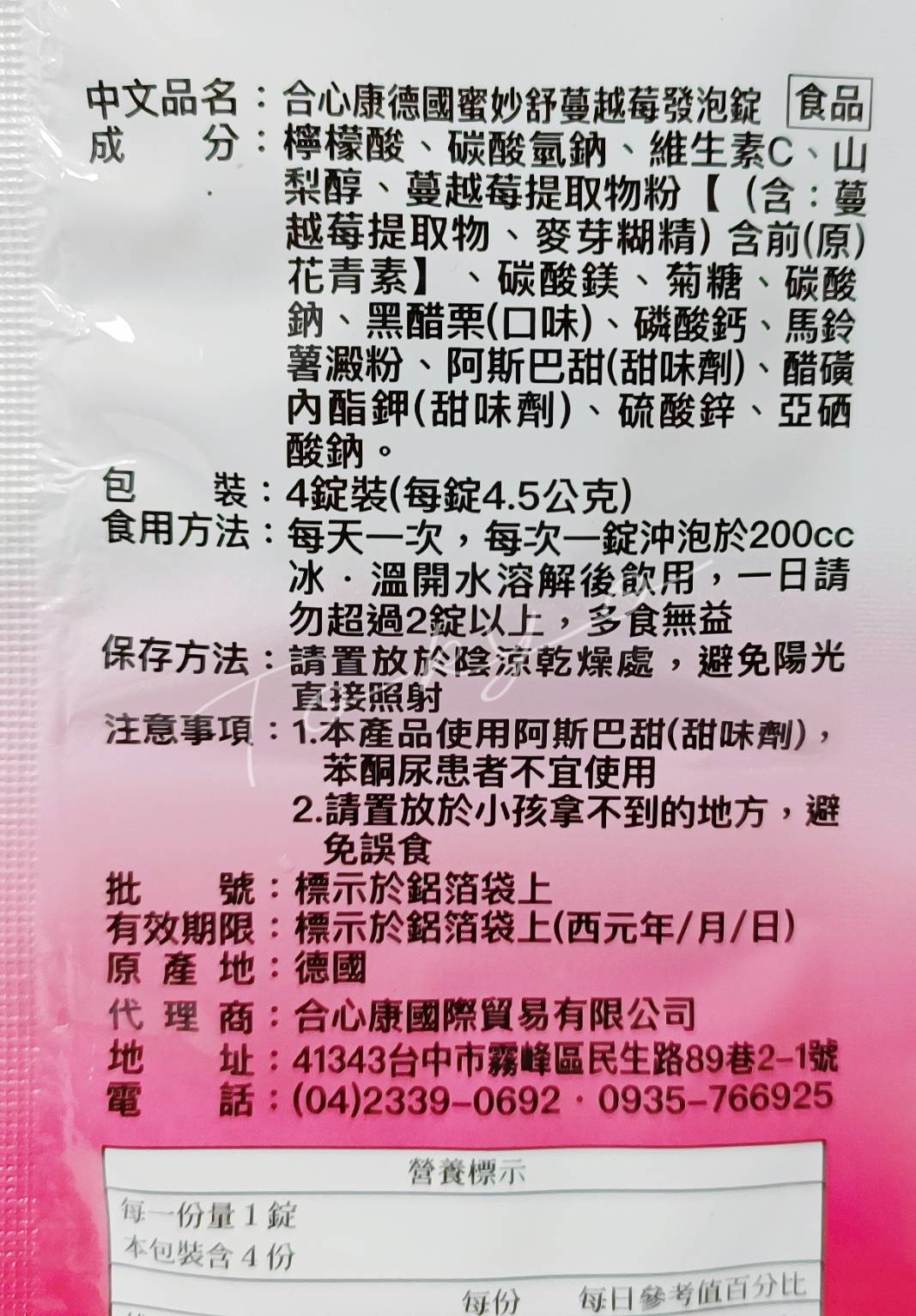 合心康 德國 樂康 蔓越莓發泡錠 4錠/包