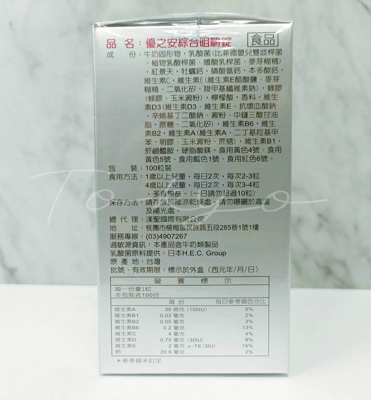 優之安 綜合咀嚼錠 兒童適用 綜合維他命 100粒入