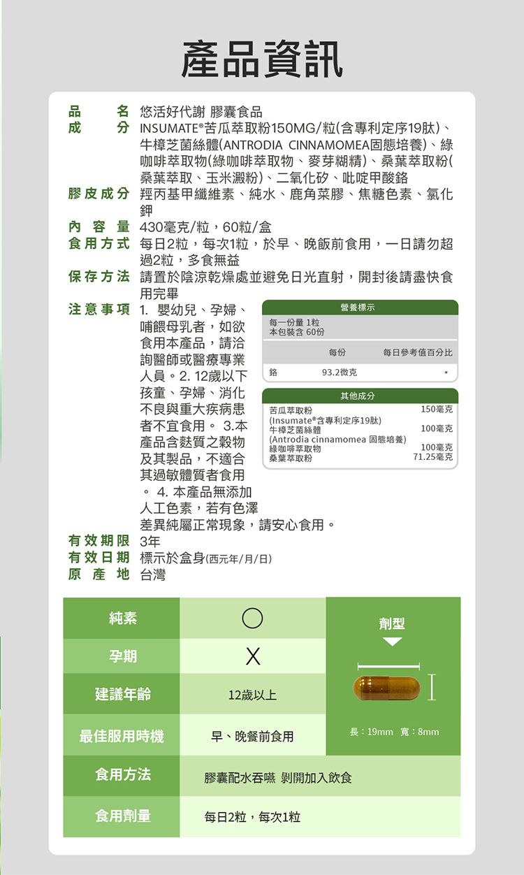 悠活原力 悠活好代謝 苦瓜胜肽(60粒) 全素