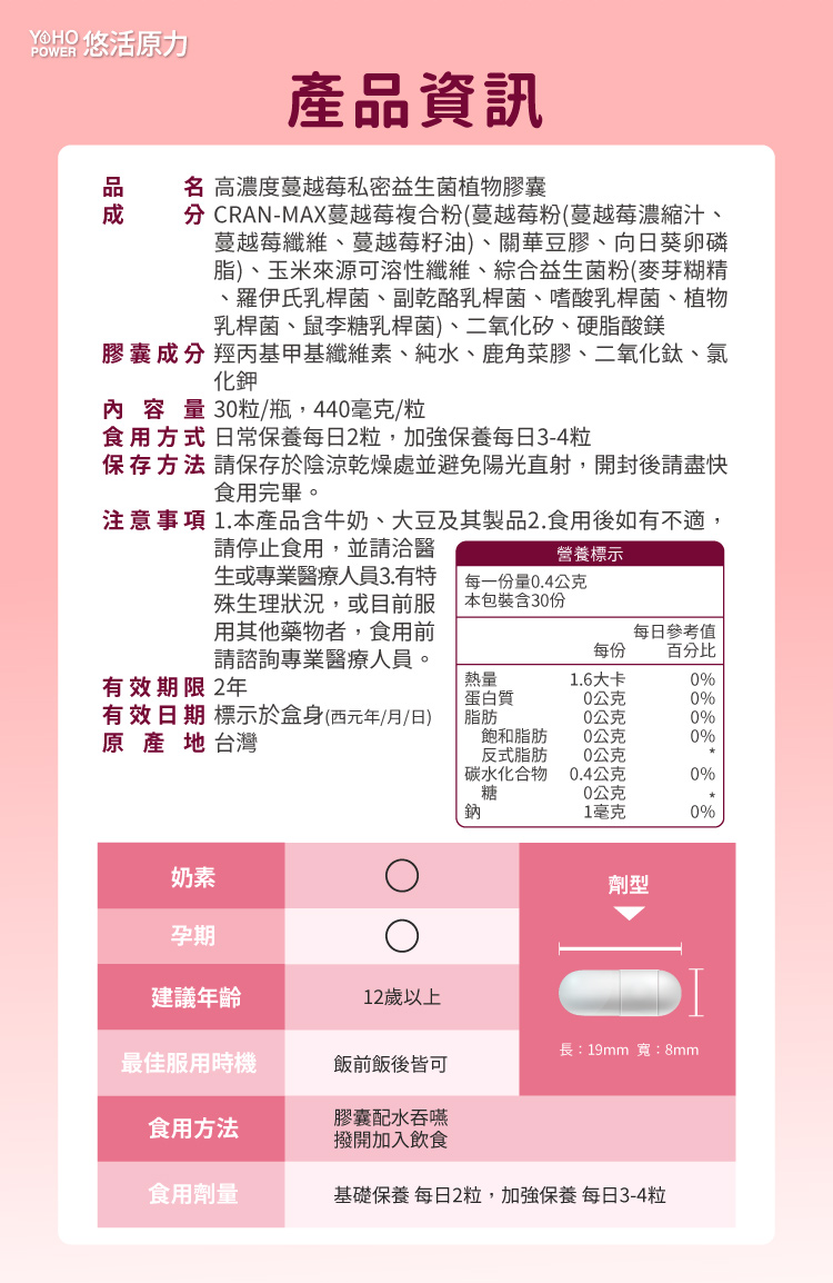 悠活原力 高濃度蔓越莓 私密 益生菌 植物膠囊 30粒/60粒