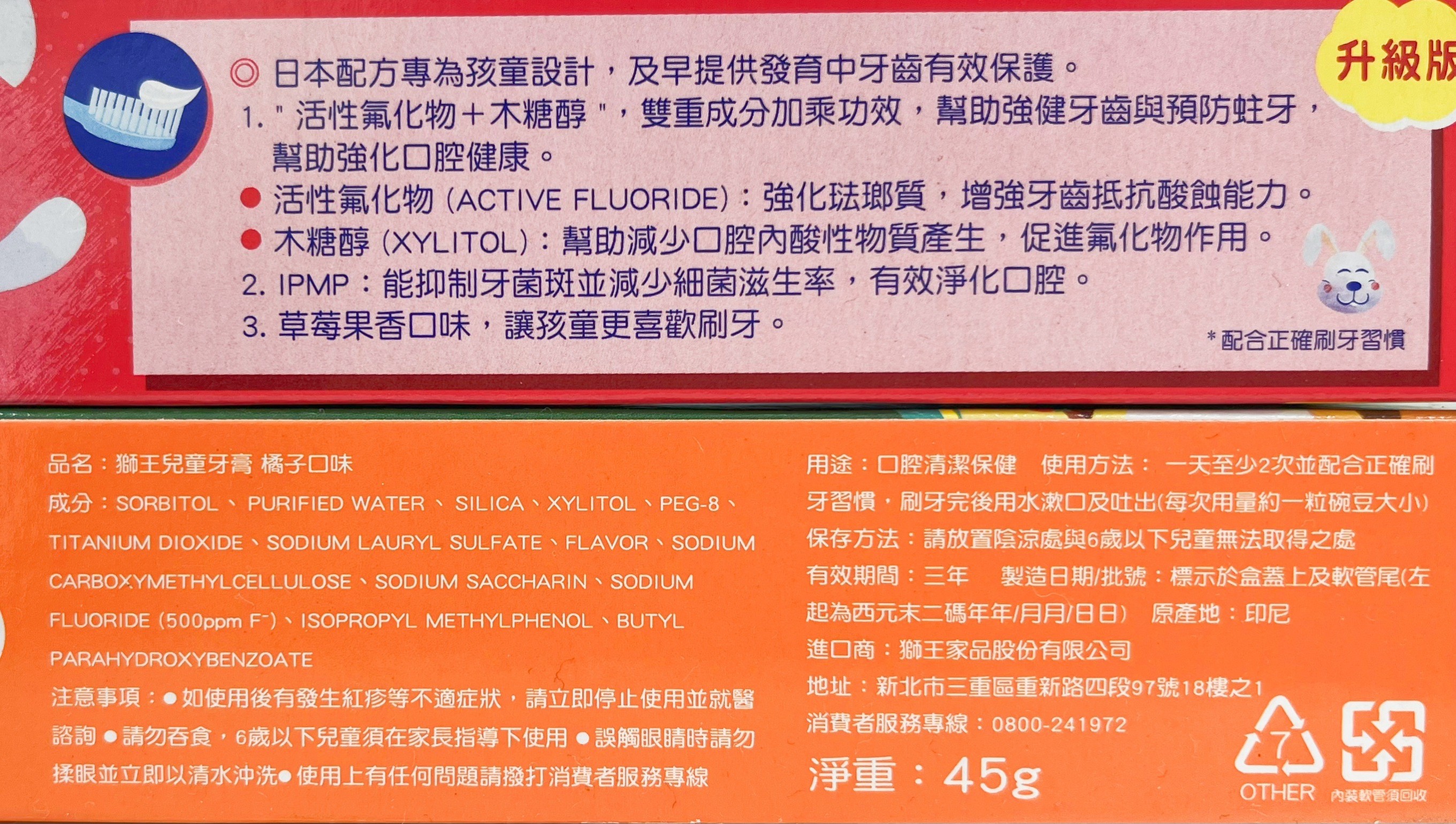 日本 獅王LION 兒童牙膏 45g (葡萄、橘子、草莓) 台灣獅王 預防蛀牙