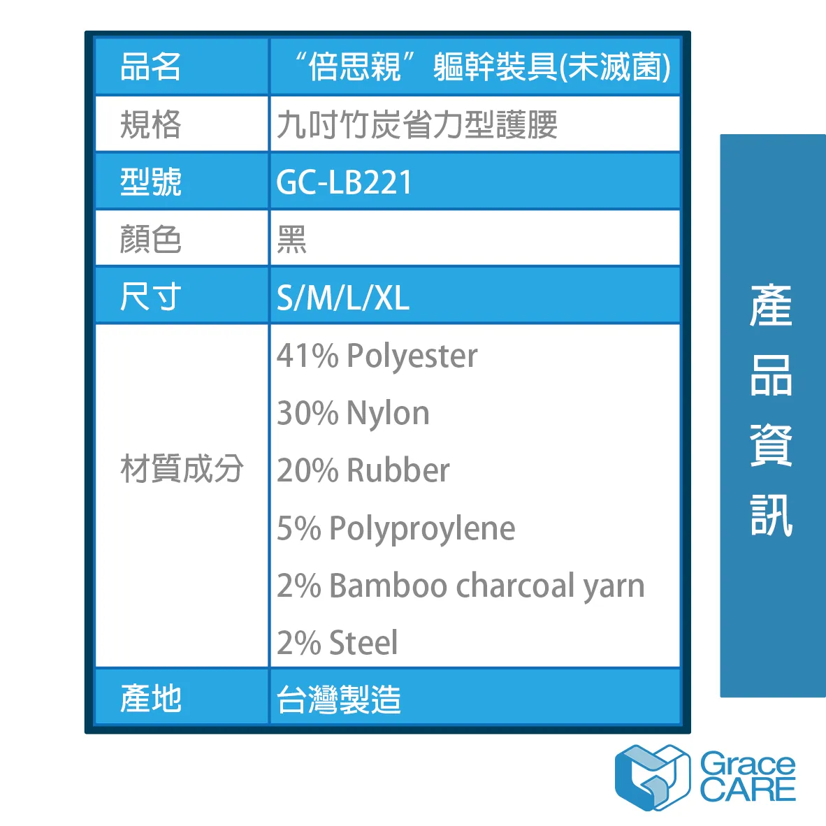 規格: Grace CARE 省力護腰 GC-LB221 (九吋竹炭省力型護腰)