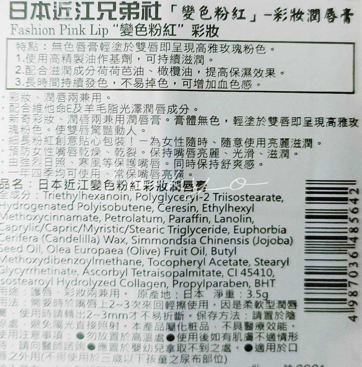🔥日本進口🔥近江兄弟 OMI 保濕變色粉紅潤唇膏 滋潤護唇膏 3.5g 粉紅潤唇膏